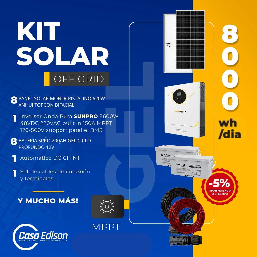 KIT DE ENERGIA SOLAR 8.000W SISTEMA FUERA DE RED (MPPT) GEL